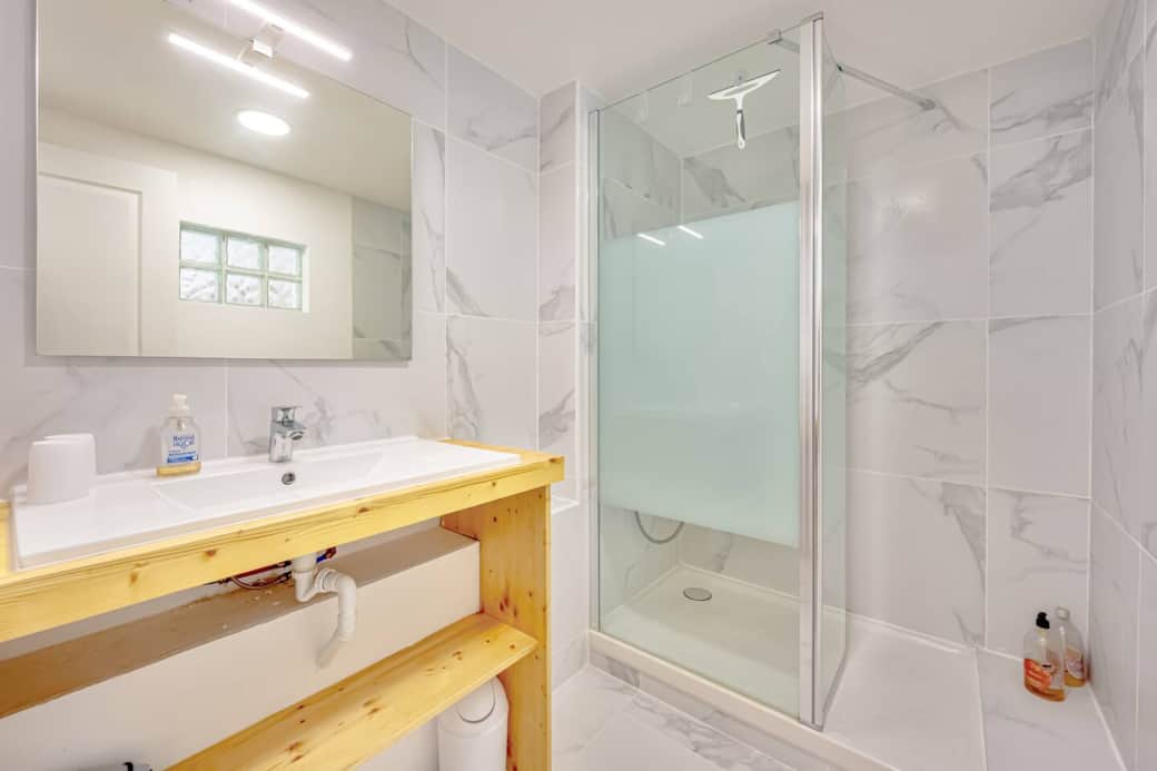 La jolie salle d'eau refaite avec goût et des toilettes séparées pour plus d'intimité.